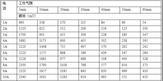 電磁鐵工作氣隙磁場是根據(jù)電磁感應原理,電流源對磁場線包供直流電流,并由導磁回路聚磁產(chǎn)生磁場,調節(jié)氣隙大小,改變極面直徑,調整工作電流均可改變工作氣隙磁場的大小強弱。